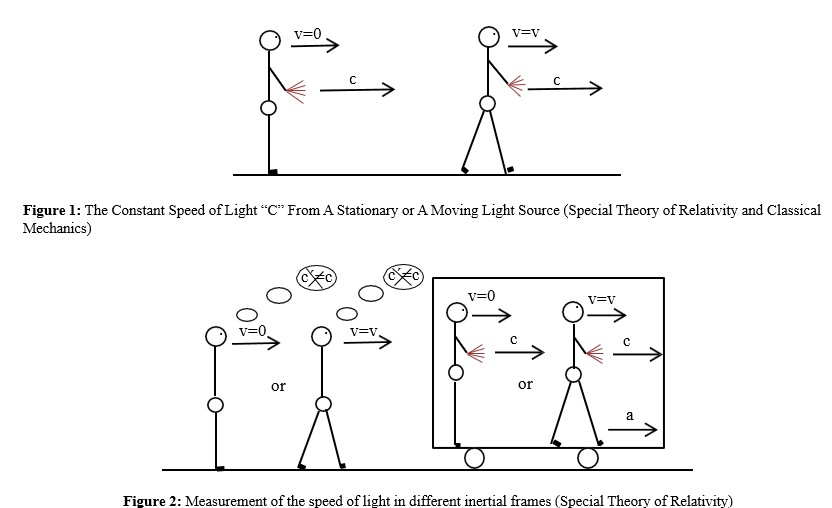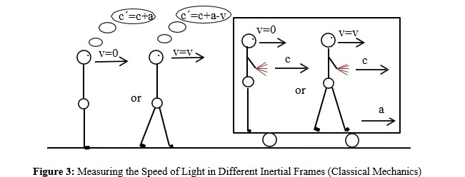Figure 1 and: b) a stationary observer located outside a space that moves with speed “a”, relative to the observer, for a ray of light moving with speed “c” inside the moving space will measure a speed of light cÃÃÃÂ????=c, regardless of its motion, Figure 2.