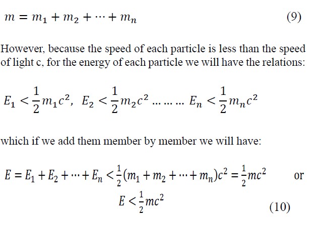 From the relation (10) we observe that the total internal energy of a body of mass m is less than 1/2mc2, so in no case can equation (8) be valid. We therefore reach the simple conclusion that not only the equation (8), but also the entire reasoning for establishing the equation, is incorrect.