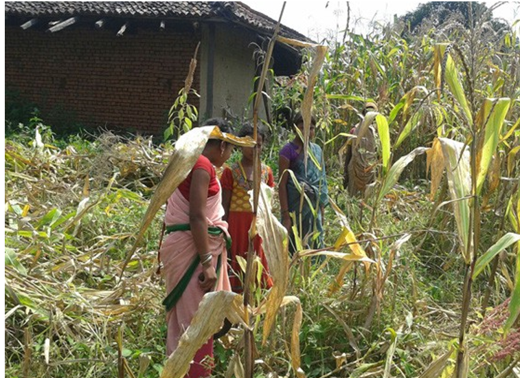 Baiga tribe have their farm in front of their houses. They grow banana, mango and custard apple in front of their houses. Rice and maize are the most suitable crops from their type of the land. All women work in the field. Baiga tribal women are supposed to maintain the grain for the offseason. Rice and maize and other gains are made to dry in sunlight and are kept in dry place inside their houses. They make a big chain of maize grain and hang them to use after the season. These are used by them in offseason. Women are equally engaged in farming as their male counterparts.