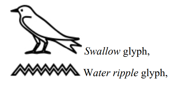Ancient Egyptian hieroglyphs feature diverse avian symbols (e.g., falcon, vulture, ibis, heron, swallow, sparrow), each distinguished by anatomical traits. Swallows, for instance, are identified by their straight beaks and forked tails—features consistently rendered in hieroglyphic carvings (Figure 10).