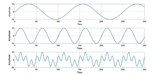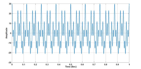 For analysis purposes, we utilize two signals. The first signal is composed of three sinusoidal signals of frequencies 16, 40, and 80 Hz concatenated to form a non-stationary signal shown in Figure 6. The second signal is generated using the same three sinusoidal signals with the same frequencies. These signals are summed to form a stationary signal shown in Figure 7
