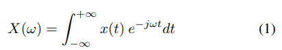 The Fourier transform (FT) is a mathematical technique widely used to convert a mathematical function or a physical signal from the time domain x(t) to the frequency domain X(ω) to discover the spectrum characteristics of the signal. The conventional equation of the FT is given by [2]: