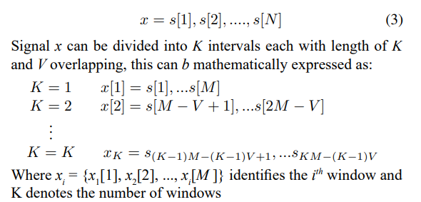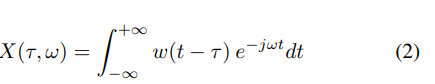 STFT is a method developed to add time information to the FT. STFT is designed to overcome the poor time resolution of FT. STFT computes the FFT of short-duration segments of a long signal. This is achieved by multiplying the longer signal x(n) by a small sliding window w(n). The equation of STFT is given by [5]: