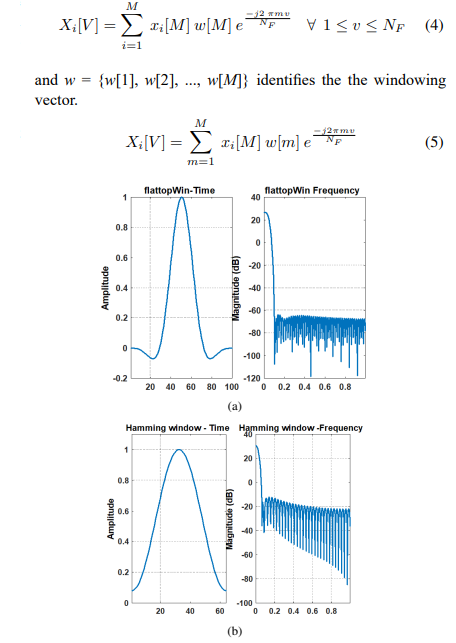 Figure 3: Examples of built-in MATLAB windows (a) rectwin window (b) Hamming window