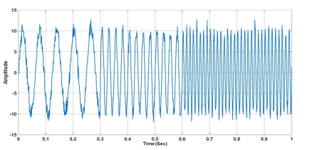 Signals can be classified based on different criteria. They can be classified in terms of continuity into continuous or discrete signals, periodicity into periodic or aperiodic signals, probability into random or deterministic, stationarity into stationary or non-stationary signals, etc. In our case, we focus on signal classification based on stationarity. To describe a signal as stationary, is to say the mean and correlation structure of the signal remain constant over time. The stationarity structure of the signal helps in systems modeling and design since the main characteristics of the signal remain constant [9]. The primary difference between stationary and non-stationary signals is most evident in terms of the sine wave equation. In stationary signals, the time period, frequency, and spectral contents are constant [8]. On the other hand, these parameters vary in the case of non-stationary signals [1]. In the case of stationary signals, applying the FFT to analyze the signal spectrum is very useful, because the averaging of the FFT is representative of the signal at any point in time. However, applying FFT in the case of non- stationary signals is not useful because the signal may have different frequencies over time. Figures 1 and 2 show stationary and non-stationary signals respectively.