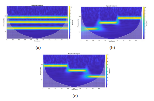 Figures 17 (a) , 17 (b), and 16 (c) display the wavelet-based draw of stationary signal, non-stationary signal, and flipped version of the non-stationary signal respectively.