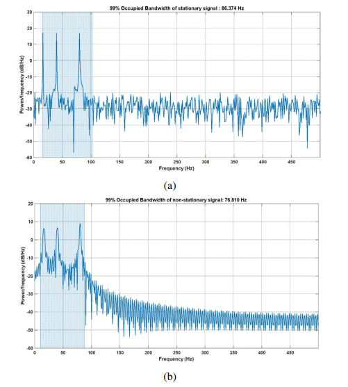 Figure 19: The occupied bandwidth of (a) stationary signal (b) non-stationary signal