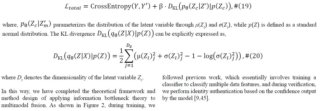 Despite its potential, current research has limitations. Most works are context-specific and lack applicability to biometric multimodal feature fusion. Furthermore, the complex relationships between features from different modalities and fused features are often overlooked. Designing an IB method specifically for multimodal feature fusion is a critical direction for future research.