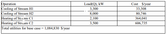 T is the temperature difference between the hot and cold fluids. The cost of the heaters, coolers, and heat exchangers are calculated on the basis of the heat transfer areas. The installed cost of each heat exchanger was estimated on the basis of $ 500 per square meter[9] . The currency units are US dollars throughout the study. The installed costs of the coolers and heaters were estimated at 50% of the cost of a comparable heat exchanger with the same heat transfer area and material of construction. The difference in costs due to sizes was corrected using the six tenth rule. The material of construction is carbon steel for all equipment.Utility costs for the two cases were calculated on the basis of cooling water cost at 0.354 ($/GJ) and steam cost at 6.08 ($/GJ) as reported by the software application CAPCOST.