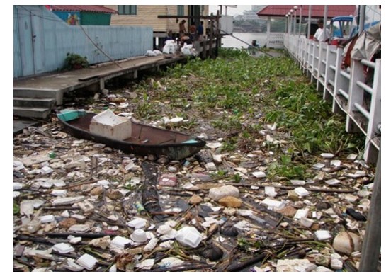 Figure 1: Styrofoam that Fills the Canal During Floods (Chao Phraya River in the back of the Photo) (2010)