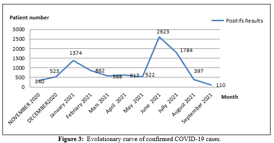 In our study we observed the epidemic had first peak between January and February 2021 and a second peak between June and July with 2627 and 4825 confirmed cases respectively, which is close to the epidemiological situation in Tunisia. Such as we showed a positivity rate of 35% and more than half of the con- firmed cases were in the age group of 20-65 years. Studies done in Wuhan showed that the majority of Covid-19 patients are adults; their average age was 55.5 years. Elderly subjects ac- counted for only 10.1% of patients. Children are less frequently affected and less severely, but some authors have described the involvement of infants under one month of age [29].