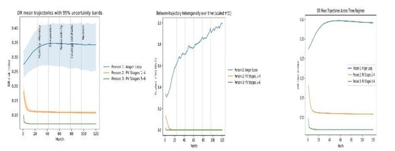 • Makes uncertainty explicit through calibration bracketing and distributional reporting Importantly, qualitative conclusions—namely, that degraded worldview coherence coupled with elevated cultural narcissism substantially amplifies downstream mortality risk via the anger- loop cascade, while advanced PV stages markedly attenuate such risk—were stable across both calibration schemes.